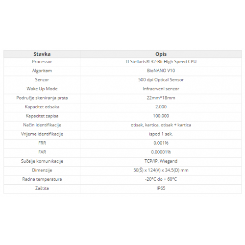 • BioNANO algoritam osigurava brzu provjeru otiska, ispod 1 sekunde